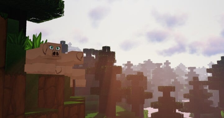 Mais Minecraft 4kids, ce n’est pas qu’un pack pour les enfants. On l’a vu, il arbore un style cartoon, mais aussi une résolution 128x. Dans ces conditions, il dé-pixelise fortement Minecraft, réduit les contrastes et lui insuffle un style original. Car le succès du Sphax PureBDCraft le montre bien : le cartoon bien fait est rare, mais populaire. Et Minecraft 4kids se place de manière décisive dans le camp des packs cartoon réussis.