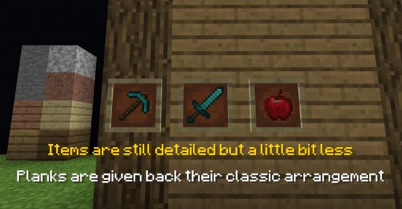 Vous l’aurez compris, ce pack reste une très bonne alternative au pack par défaut de Minecraft pour ceux qui ne sont pas satisfait des nouvelles textures et garde la résolution 16 x 16 afin d’être compatible avec toutes les configurations.