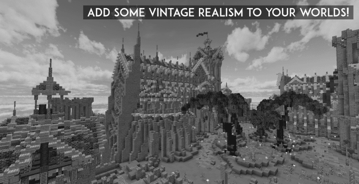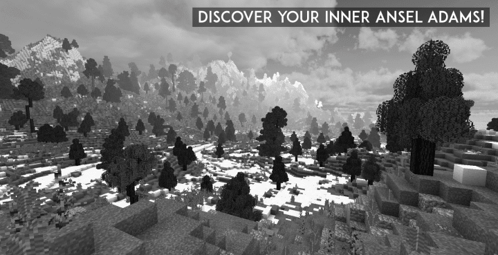 Il n’y a pas grand-chose à dire, tout est donné dans le titre : Monochrom est un pack de texture qui rendra Minecraft monochrome. On pourrait penser que le créateur à juste mis du noir et du blanc sur le vanilla, mais force est de constater qu’il s’est réellement appliqué sur son oeuvre car il a tout simplement conçu un pack de texture juste avant auquel il a retiré toutes les couleurs. Qui plus est, ses deux Resources Packs sont alors contradictoires étant donné que l’un prônait la distinction entre les couleurs, et rien que son nom vous l’expliquait, “Farbenlehre” de l’allemand que l’on traduit littéralement par : “Les couleurs enseignent”. Aussi, lors de la mise en place de Monochrom, il a rencontré quelques difficultés et a alors dû changer complètement certaines textures, alors non, il n’a pas fait qu’enlever des couleurs.