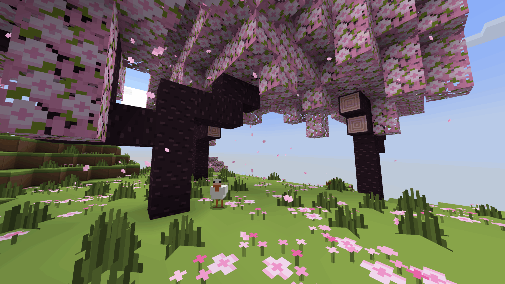 Le pack applique son style particulier à l’ensemble du contenu : blocs, objets, créatures et même l’interface utilisateur. Chaque élément adopte une esthétique plastique qui gomme les détails habituels pour mettre en avant des aplats colorés. Cette cohérence visuelle donne au jeu une atmosphère légère, presque ludique, rappelant certains jouets ou univers de dessin animé.