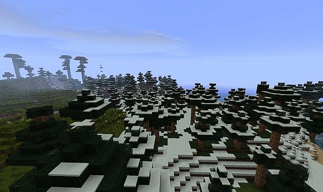 Avant même de s’attarder sur sa fibre “science fiction“, on peut d’emblée affirmer que Scifantasy Pack ne s’y limite pas. Avec sa résolution en 256x, il modifie déjà les blocs naturels. Le pack leur apport des textures assez voisines de celles du jeu de base, mais avec un accent prononcé sur le réalisme et une touche de rustique. La nature y est dépeinte comme moins ordonnée, mais plus protubérante. Le côté rustique des textures est renforcé par la palette de couleurs employée, qui penche vers des teintes relativement sombres.