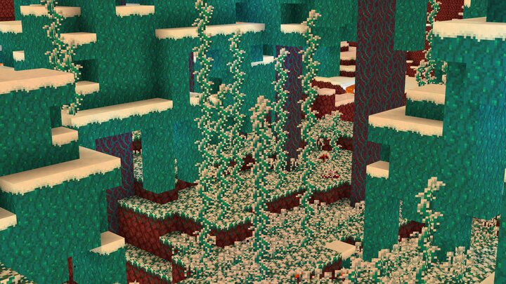 Mais l’hiver, ça ne concerne pas que l’Overworld ! En décembre, les températures habituellement infernales du Nether sont adoucies, permettant à la neige de s’y installer. Si, pour Noël, vous cherchez une destination dans laquelle le mercure sera clément, cette dimension est donc idéale ! En revanche, si vous préférez la découverte d’une faune locale plus imposante et d’une lumière plus… tamisée, l’End saura également vous accueillir, lui aussi recouvert d’une fine pellicule de neige.