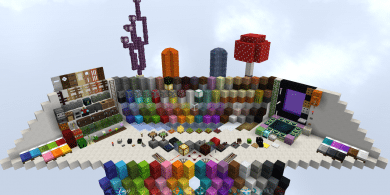 Bedarride apporte une plus-value à cette idée de base en y mettant sa propre touche personnelle, dans le Resource Pack TextureCraft. Son objectif est simple : maintenir les textures de base dans leur cohérence préexistante, mais sans hésiter à les bousculer un peu en ce qui concerne leur style, et plus particulièrement leurs couleurs. TextureCraft mise en effet sur une palette graphique où le vert est prédominant, notamment dans les blocs naturels et l’interface du jeu. En outre, on note également une autre influence à ce Resource Pack en 32x : au niveau macroscopique, l’ambiance générale du paysage laisse poindre un léger style rustique, qui vient donner un peu de cachet au pack.