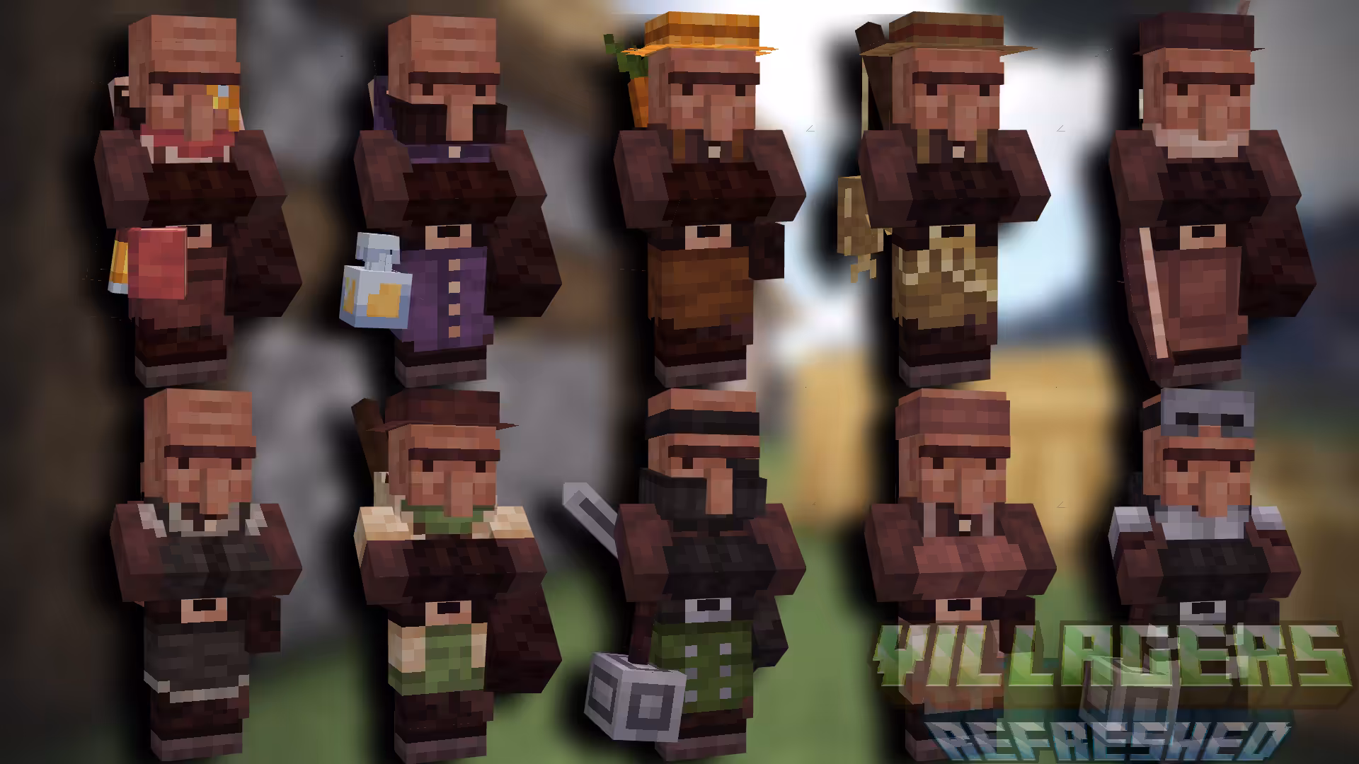 Villagers Refreshed est un petit add-on permettant de compléter un pack de textures proposant une révision complète de l’apparence des villageois, des Illagers et des entités associées. Adapté pour les versions récentes de Minecraft, le pack se focalise sur la refonte esthétique des villageois et des Illagers.