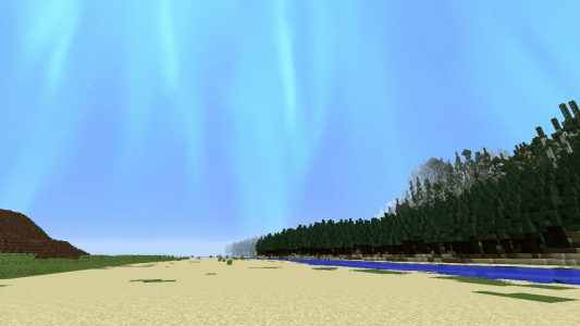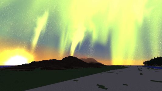 Comme son nom l’indique assez bien, ce Resource Pack a pour point central les aurores boréales. La nuit, c’est donc un spectacle haut en couleurs qui vous attend. Les aurores boréales brillent de mille feux, dans une explosion de couleurs où le vert semble prédominer. Avec une résolution en 512x, Stingray’s Aurora Borealis fait preuve d’un réalisme époustouflant qui lui permet de modéliser avec fidélité les jeux de lumière qui ont cours lors de ces spectacles impressionnants.