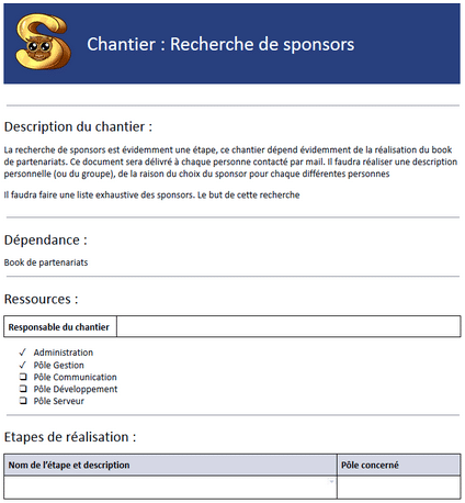 Le projet est clarifié, les thématiques sont définies, il est à présent temps de rédiger plus précisément les tâches à effectuer par pôle. Pour cela, l’utilisation d’un document comme le cahier des charges (CDC) sera nécessaire. C’est un outil de pilotage des projets qui définit les besoins et les spécifications d’un projet ou d’une mission.