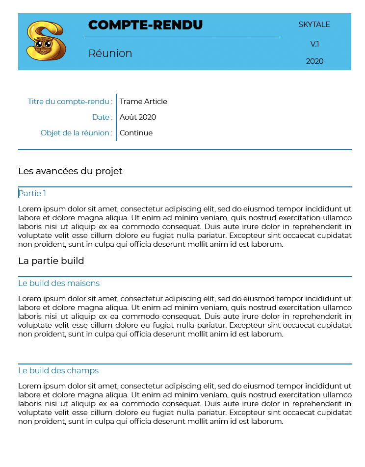 Pour finir, il vous faudra tout simplement organiser votre compte rendu en rangeant toutes les informations point par point. Voici un petit exemple pour vous donner de l’inspiration :