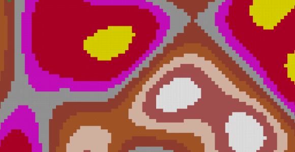 On voit donc une répartition des fleurs par zone qui ressemble beaucoup à des courbes de niveau : si vous imaginez que chaque couleur est une altitude, vous avez l’équivalent d’une carte topographique. Vous pouvez remarquer qu’on a toujours le même ordre :