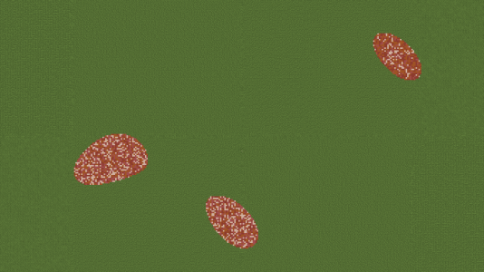 On se retrouve donc avec un espace vide dans les tapis qui correspondent aux localisations des hautes herbes et des fleurs générées. En accumulant des cycles, on enlève d’autres tapis et les laines vertes en dessous illustrent les endroits accessibles au distributeur.