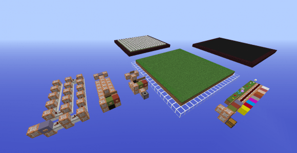 [symple_tabgroup][symple_tab title=”Zone de pousse”]La zone de test consiste en une couche de 19×19 blocs d’herbe. Sous le bloc central se trouve un distributeur, face vers le haut, de façon à ce que la poudre d’os soit distribuée à partir de ce bloc.